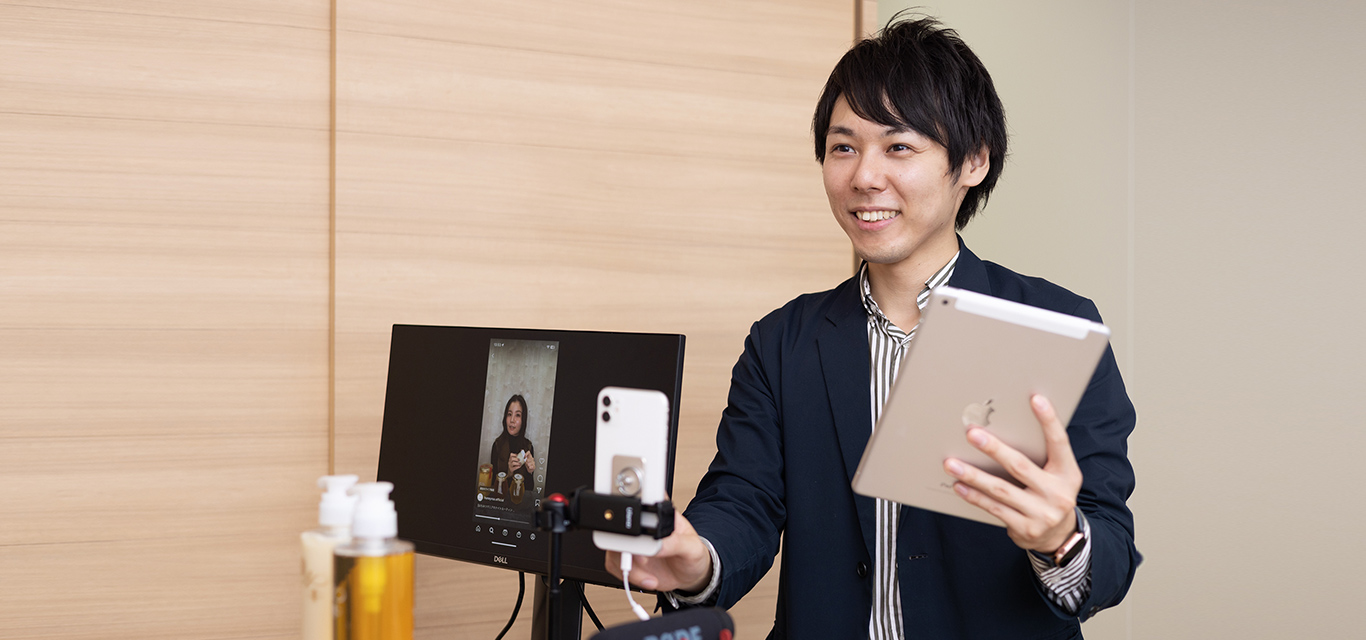ハニーロアの直営店の営業として、売上状況や目標の管理、出店先の商業施設の営業さんとの商談などを担当しています。日々の売上をチェックし、売上目標に対して、何が達成できたか、何が不足しているかなどについて、ブランドプロデューサーや事業部長、そして店舗社員のトレーナーの方々と日々コミュニケーションを取りながら検討。また、出店先の営業さんと直近の売上情報を共有し、今後の新商品のご紹介やブランド独自のキャンペーン企画、宣伝活動などを話し合う会議にも全て出席します。他にも、ブランドのPR担当が出演&配信しているインスタライブ配信のサポートや、商品を出店する大手通販サイトのショップページの管理や運営も担当。より良い売上、そしてブランドのファンのさらなる獲得のために活動しています。